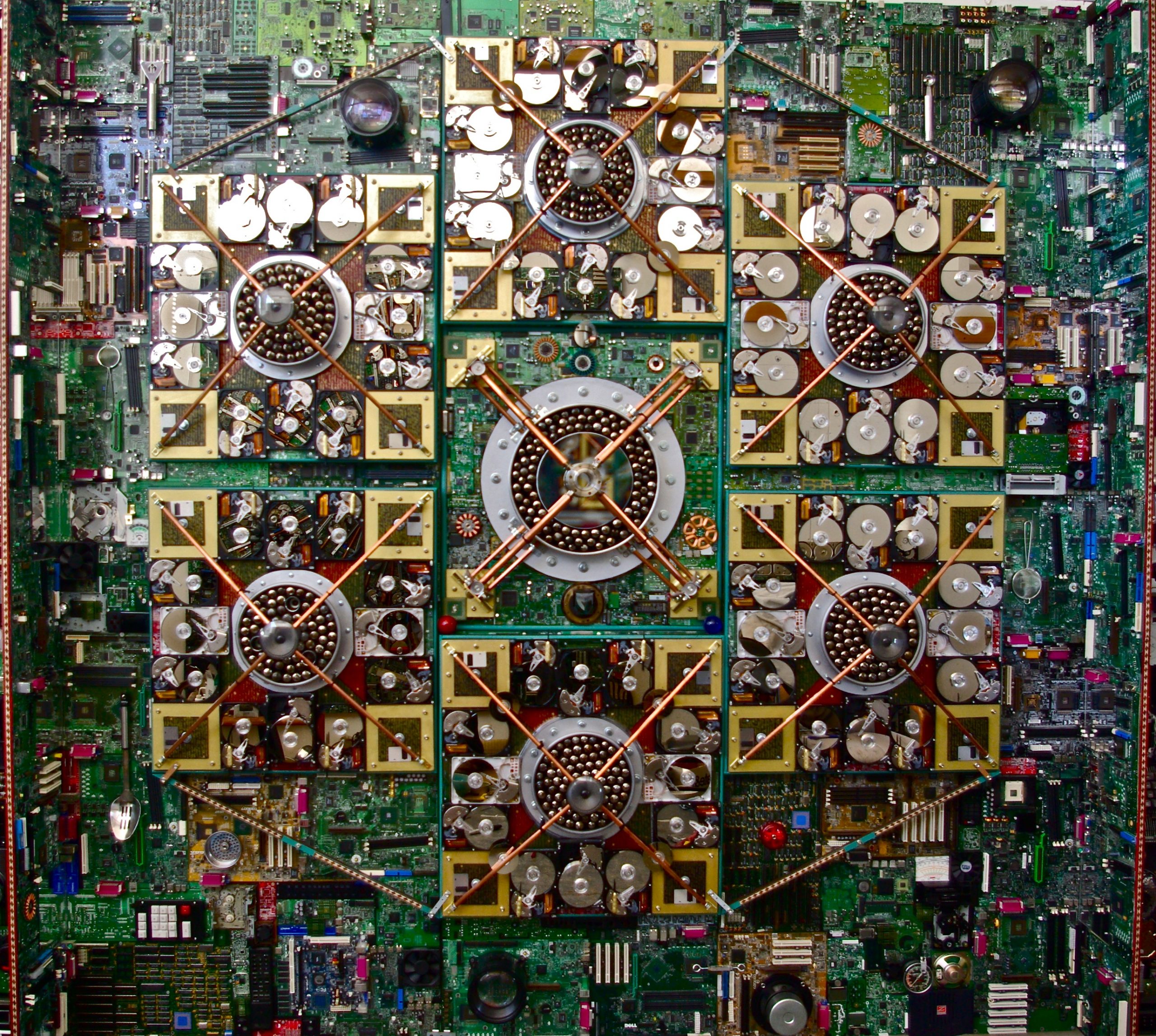 Leave a Comment For a very interesting and intriguing perspective, take a look at some large scale assemblages by artist John Zaklikowski. He uses computer and electronic parts, as well as more common objects to produce his artwork, described by him as a “testament to and commentary on the intersection of art, science, and technology.” Look closely at “Ghent” and you might recognize the 6 mirrors of the original MMTO.