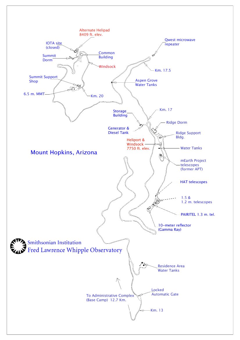 - Turn RIGHT onto S. Mt. Hopkins Road and continue for 7 miles to reach the Administrative Complex/Visitors Center (sometimes referred to as the “Basecamp”).