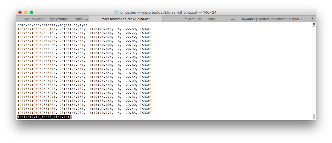 The beginning of my target catalog text file, to show the format – CSV in this case.