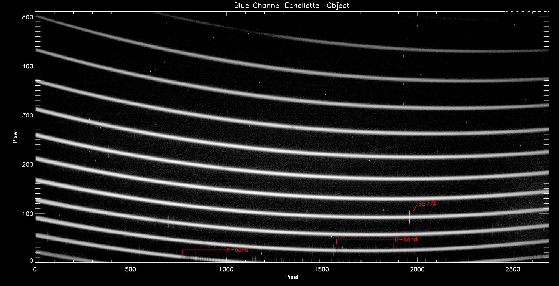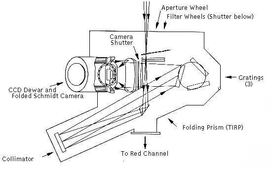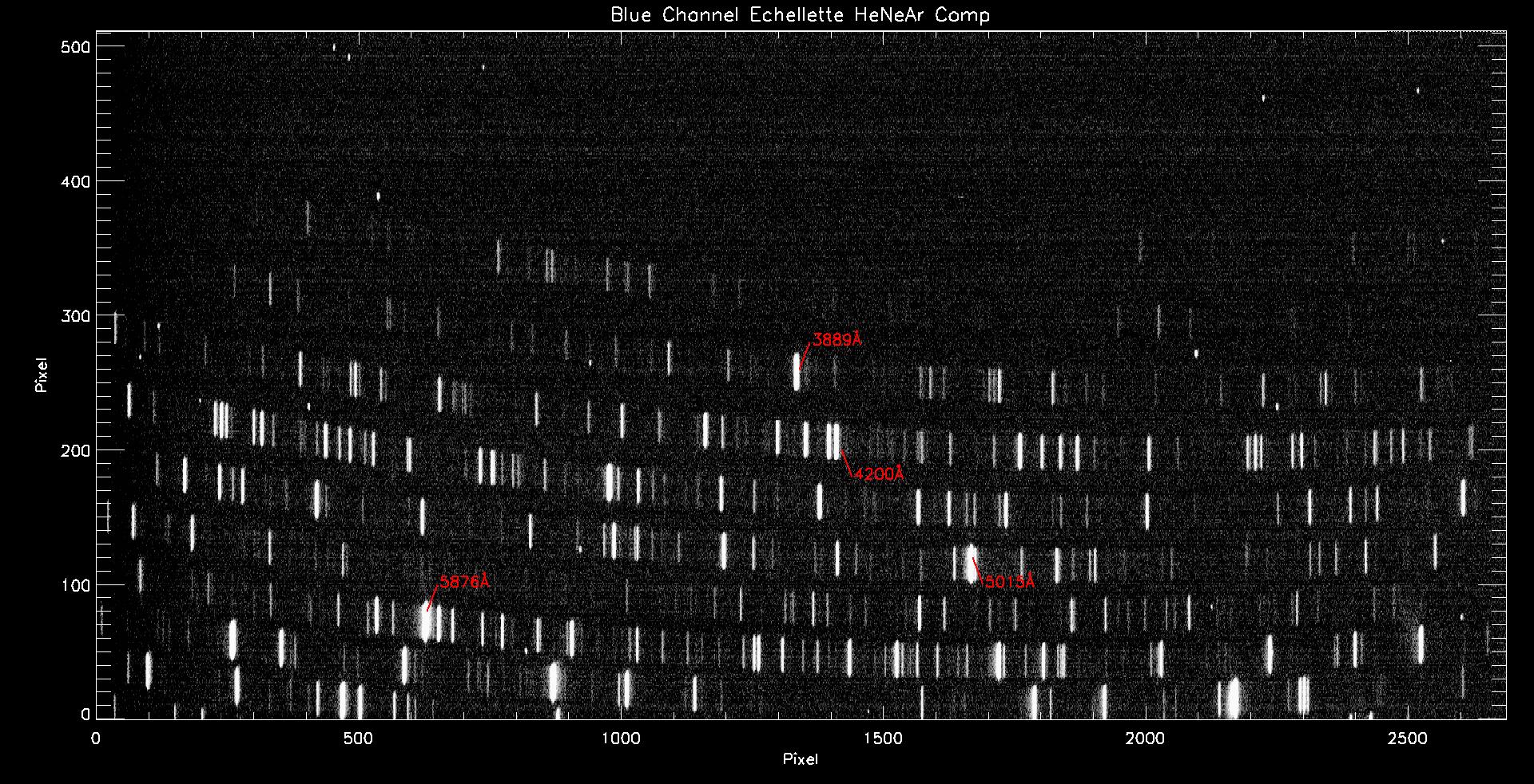 Configuration of the spectrograph for cross-dispersed work requires that the spectrograph be taken off the telescope. In practice, this means that the spectrograph is scheduled for cross-dispersed “runs”. It is possible to leave the prism in and use other gratings, but there is significant throughput loss and the spectra are quite curved. It is also possible to mount the Red Channel on the Blue Channel and use it for backup programs in case of inclement conditions. Prospective users of the Echellette should contact a staff scientist.