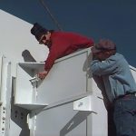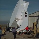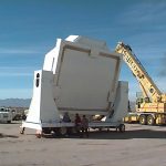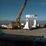 Fit up of the transport box on the custom trailer. February 13, 1998