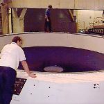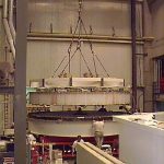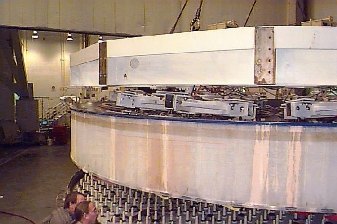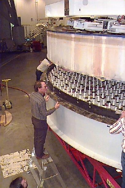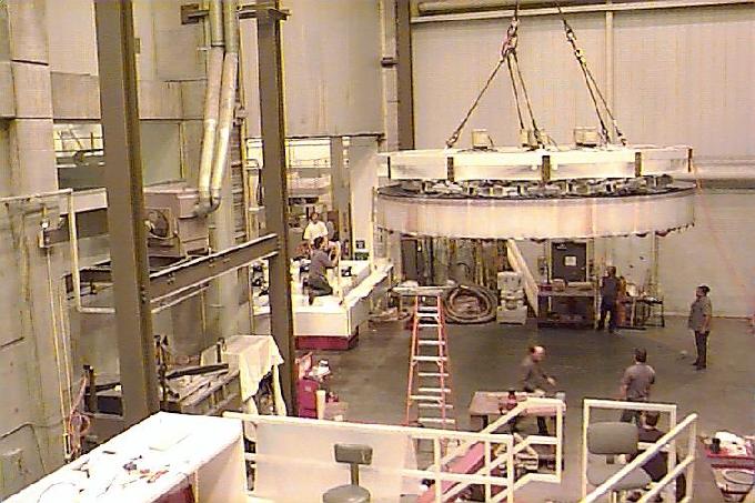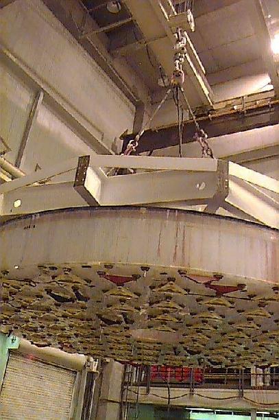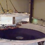 Lifting the polished primary from the polishing cell - Steward Mirror Lab: Oct 22, 1997