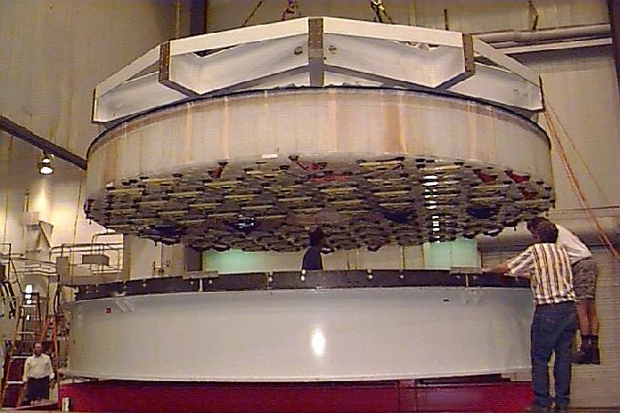 Installing the primary in the telescope cell. October 28, 1997
